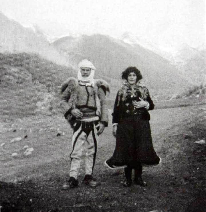 Të nesërmen ishte plaka e Petrushit që me shkop në dorë, nëpër dëborë, u printe përpara si një dhi e egër për tu treguar rrugën drejt Ranza e Shënikut. Shpesh plakës i duhet të ndalojë dhe të presë afrimin e karvanit që ngjitet ngadalë. Etnografes franceze ajo i duket si «një personazh përralle», siç e shkruan ajo në ditarin e saj. Më pas, pas shkëmbenjsh e kataraktesh, karvani ndalon në një shtëpi tjetër ku jetojnë brenda një dhome të madhe e disi të ndarë 26 persona të së njëjtës familje. Atje pjekin patate dhe rreth zjarrit, siç është zakoni, ai që i bie lahutës ia merr një kënge të gjatë nga eposi kreshnik, duke i kënduar një bote të largët e mitike, heronjve të këtyre maleve. Jacqueline mendon se gjithçka përreth asaj shtëpie, orenditë, veglat e punës, kostumet, instrumentat, objektet e përditshme e të kuzhinës, gjithçka atje është një muze i vërtetë etnografik. Dhe për më tepër në një vend që shpesh ata e krahasojnë me Zvicrën. Pikërisht atje, gjatë natës, të shtrirë midis turmës, ku disa janë ngjeshur anash zjarrit në mes të dhomës, gjatë natës, René ndjen se një «kafshë» e çuditshme i ngjeshej prapa veshit. Por vetëm në mëngjes ata pikasën se nuk ishte gjë tjetër veçse gishtat e këmbëve të asaj plake të shtrirë më tej që ishte në agoninë e saj. Po kështu, Jacqueline ishte habitur tek flinte gjatë natës me atë lloj «jastëku» të butë që merrte forma të ndryshme, por vetëm ajo në mëngjes konstatoi se ishte një plënc lope. Udhëtimi i tyre vazhdon, ditët ndjekin njëra-tjetrën dhe ja ku gjenden në një situatë dramatike, të humbur mes asaj humbëtire, në mes të stuhisë, pa ditur nga të shkojnë, gjithnjë në kërkim të Qafës së Pejës. «Situata po bëhej tragjike, – shkruan Jacqueline, – gjersa më së fundi lodhja do të na detyronte ta linim pa Zot fatin e jetës sonë.». Dhe ja, dy djem të rinj, fatmirësisht si të rënë nga qielli, u gjenden aty dhe i ftojnë në vatrën e tyre duke u prirë përpara. Por padyshim, në këtë udhëtim një mbresë të veçantë çifti francez ka gjatë qëndrimit në kullën e Preng Calit, figura e të cilit duket se i tërheq ata në mënyrë të veçantë. «Preng Cali, – shënonte në ditarin e saj Jacqueline, – erdhi drejt nesh duke zgjatur duart, me një fytyrë energjike dhe një buzëqeshje të mrekullueshme. Që me shikimin e parë ishte shumë simpatik. Një gjigand i vërtetë. Ishte i gjatë të paktën 2 metra. Ishte i veshur shumë pastër, me kostumin e Malsisë së Madhe, një kostum me një elegancë të veçantë. Flokët i kishte të bardha dhe mustaqet të shkurtra që spikasnin në figurën e tij të gjatë e të dobët. Natyrish, brezi i tij ishte i zbukuruar me një revolver të madh, një tjetër me një dorezë fildishi apo prej kocke, një model si ato që mbreti u jepte atyre që donte t’i shpërblente e t’i nderonte…” Preng Calin, ashtu si dhe Fran Zefin më pas, dy etnografët e shohin si një personazh që më shumë i afrohet mitit sesa realitetit të përditshëm të jetës në këto male. Ky malsor, që jepte dhe jetën për mbrojtjen e kufijve, në fillim ishte zemëruar me mbretin për shkak se ai ishte gati t’i linte kufijtë e veriut, e madje e kishte internuar në kalanë e Gjirokastrës, por më pas, vetë mbreti e kishte liruar atë e madje i kishte dhuruar dhe një kobure të zbukuruar në argjend, meqë mbretëria kishte nevojë për prijësat e bajraktarët e veriut. Por të veçanta për etnografët ishin dhe marrëdhëniet e tyre, veçanërisht të Jacqueline-s me Pashkën, gruan e Prengës, e cila që kur francezja hyri në kullën e tyre e puthi drejt e në gojë. E habitshme për një grua që vinte nga Parisi midis këtyre maleve. Vallë a do ta mësonte kjo franceze historinë e mëpasme të kësaj familje pas luftës, kur Prenga do të rrethohej në një shpellë, do të kapej dhe do të varej? A do ta mësonte ajo fatin e Pashkës, e asaj gruaje të mirë që i shkonte mbrapa si e si ta kënaqte dhe që shpesh e godiste me dorën e saj mbi shpinë për t’i shprehur dashurinë? Pashka do të përjetonte një kalvar më vete në jetën e saj pas vrasjes së Prengës, ku disa njerëz të familjes u kujdesën për të deri sa ajo vdiq në vitin 1967. Jo, askush nuk do t’i tregonte francezes se çfarë kishte ndodhur me gruan e Prengës… Megjithatë René nuk kishte harruar t’i fotografonte të dy, siç i shohim sot në disa fotografi para kullës së Preng Calit: Prenga i gjatë veshur me shajak dhe Pashka e vogël me kostumin e saj të Malësisë së Këlmendit. Një çift i çuditshëm, por me një zemër të madhe!