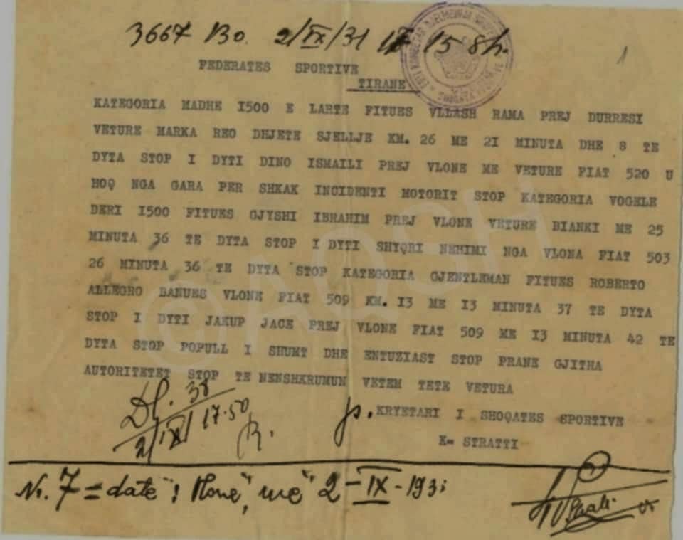 “Garat me makina, një nga zhvillimet më interesante të viteve ’20 në Shqipëri. Më 24 shtator të vitit 1929 u zhvillua gara e parë automobilistike. Më poshtë po sjellim dokumente interesante mbi zhvillimin e edicionit të dytë, në vitin 1931, ku përmenden emrat e garuesve, vendi se ku zhvillohej edhe lloji i automjeteve”, zbulojnë sot arkivat.