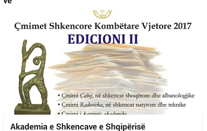 Mbështetur në rregulloren Për themelimin e çmimeve vjetore shkencore kombëtare të Akademisë së Shkencave të Shqipërisë, shpallet hapja e edicionit të dytë (2017) të konkursit të çmimeve shkencore kombëtare të Akademisë së Shkencave të Shqipërisë.