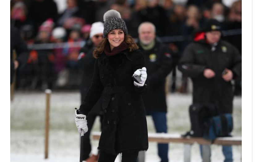 Dukesha, e cila do të lindë në prill dukej bukur me një pallto të zezë të trashë me jakë pelushi. Pjesa tjetër e veshjes dimërore plotësohej nga një palë streçe, çizme bore, një shall kaf dhe një kapuç.