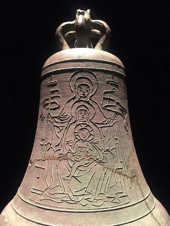 (në foto: kumbonë nga Shelcani i Shpatit, dhe disa paraqitje në pikturat e kohës ku spikat ajo e Leonardo da Vinç it)