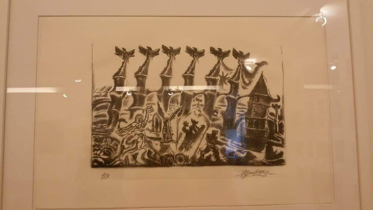 Një shqiponjë që mezi duket e tillë. Sahati i Tiranës si siluetë. Statuja e Nënës Shqipëri, shfaqur ndryshe, jo më heroike. “Është një situatë pothuaj bakanale. Narracioni fillon me elementë ikonografikë, ku prapë shfaqet statuja e Samotrasit që rri përballë shtatores së “Nënës Shqipëri”, por në një kontekst tjetër, jo në atë heroik. Një situatë hëm festive e hëm kaotike. Ai që e shoqëron është dekori e peizazhi i Tiranës historike që ne kemi pasur dikur, para se të prisheshin ndërtesat”. Është Mali i Dajtit, një ravijëzim Tirane. Një ishull. Pse e sheh Tiranën ishull? Këtë ndjesi kam pasur- përgjigjet. Kemi parasysh një Tiranë të rrethuar prej hijesh. “Ishulli i Tiranës, është një histori që ndodh në një kontekst të izoluar. Janë punime që kanë të bëjnë me kontekstin e përfundimit të Luftës së Ftohtë dhe historinë e vendit tonë në këtë kontekst.