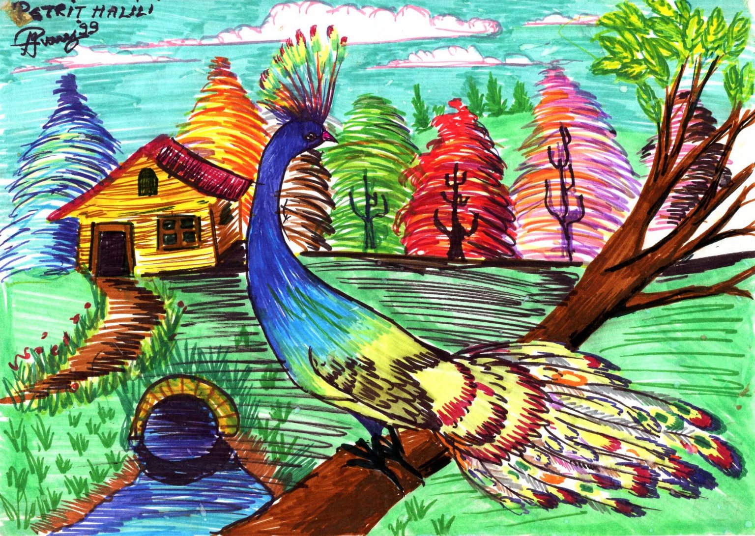 Në shfaqje, vizatimet e fëmijërisë së Halilajt janë varur në tavanin e galerisë, në mënyrë që vizitorët kur hyjnë të takohen me një peizazh fantazi me zogj ekzotikë dhe palma. Por, kur arrijnë në anën tjetër të dhomës dhe kthehen, zbulojnë shkarravinat e Petritit si: ushtarë, tanke, figura vajtuese, shtëpi të djegura.