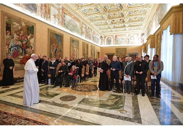 Papa takon artistët e Lëvizjes  ‘Diakonia e Bukurisë’  dhe i fton ta dëshmojnë me artin e tyre dashurinë e Zotit. “Dhuratat që keni marrë janë një përgjegjësi e njё mision për secilin prej jush”. Kështu u tha Papa Françesku, gjatë takimit të sotëm paradite, nё Vatikan, anëtarëve të Lëvizjes “Diakonia e Bukurisë”, e cila ёshtё një shërbim kishtare që ka lindur në vitin 2012 me qëllimin për të ndërtuar një urë në mes artistëve dhe përmasës trashёndetale, Zotit, për t’i nxitur të jenë dëshmitarë të bukurisë të tij.