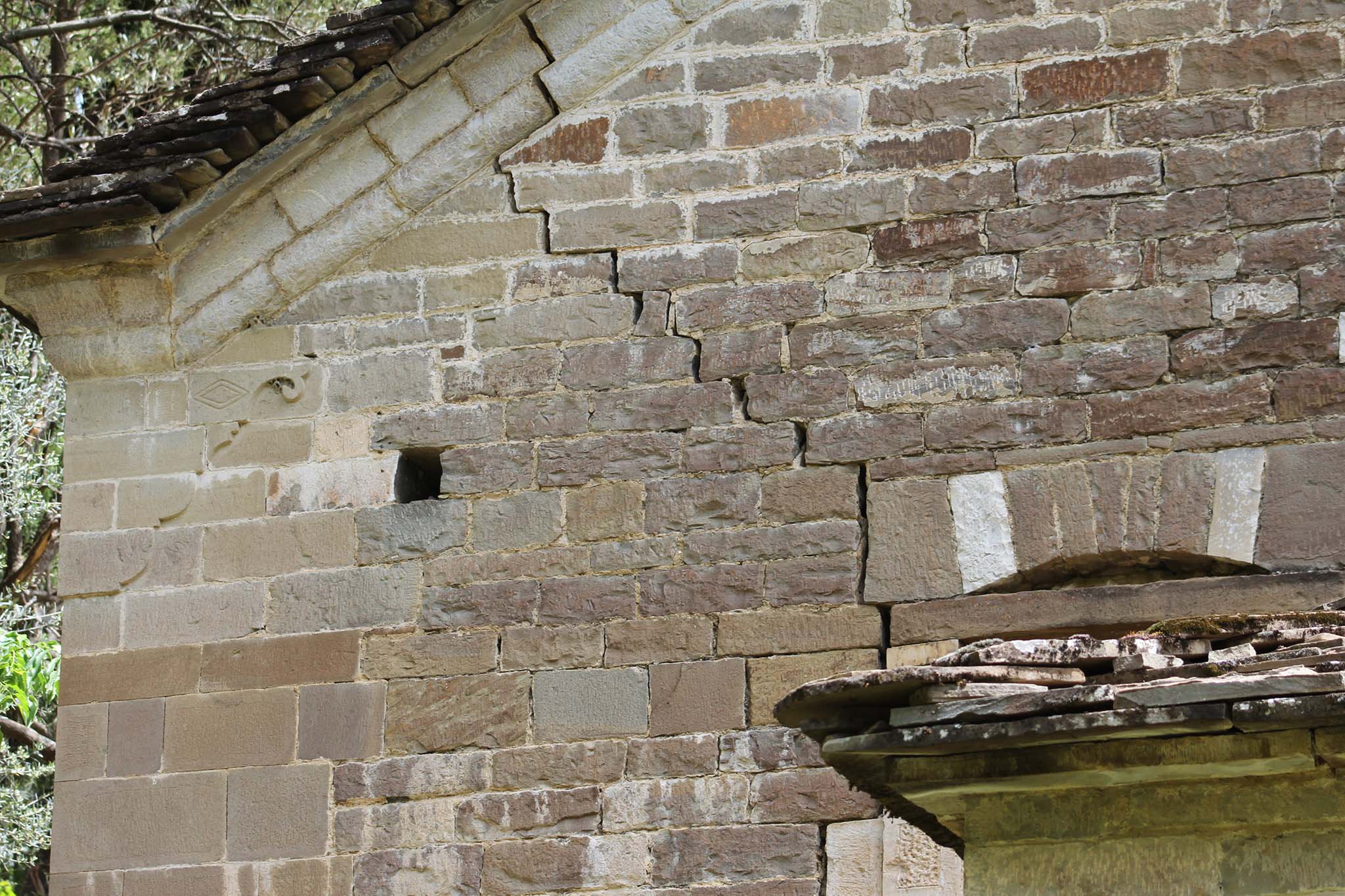 Konsolidim i muraturësme anë të injëktimeve si dhe pastrim e fugatim i muraturës duke ruajtur paturën e kohës.