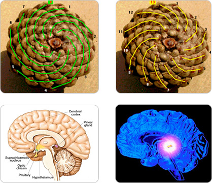 Gjëndra jonë pineale ka formën e boçes së pishës, prandaj është quajtur e tillë. Ajo është në qendër të trurit tonë dhe është e lidhur ngushtë me perceptimin e trupit tonë. Ajo është konsideruar nga shumë njerëz si Syri i Tretë Biologjik, “Vendi i Shpirtit”, “Epiqendra e iluminimit” – dhe simboli i saj i shenjtë gjatë gjithë historisë, në kulturat anembanë botës, ka qenë boçja e pishës.