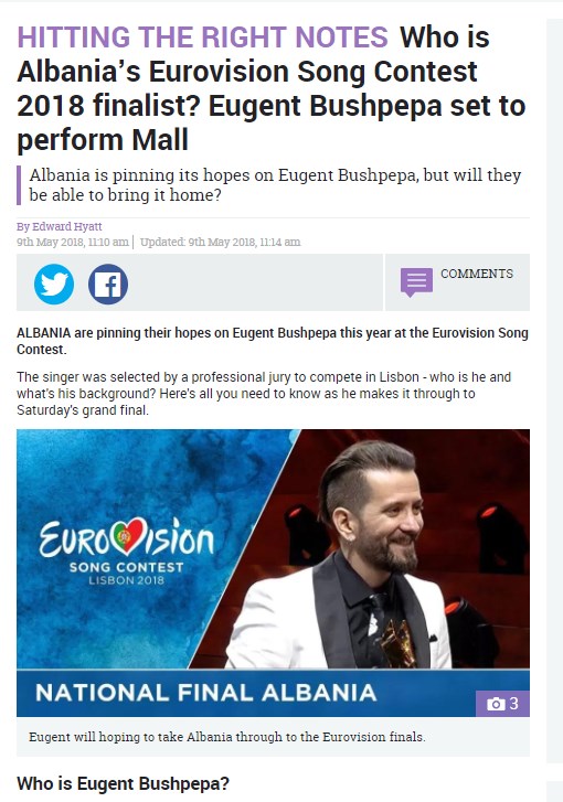 Këngëtari shqiptar, Eugent Bushpepa, ka tërhequr jo pak vëmendje në ‘Eurovision 2018’ me këngën e tij ‘Mall’, të cilën e ka kënduar në gjuhën amtare. Bushpepa u ngjit mbrëmjen e kaluar i treti në skenën e festivalit më të rëndësishëm të këngës në Evropë, duke u kualifikuar për në finale.