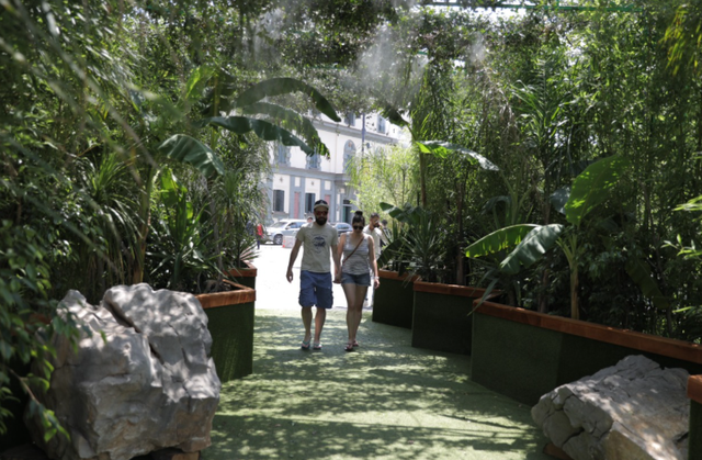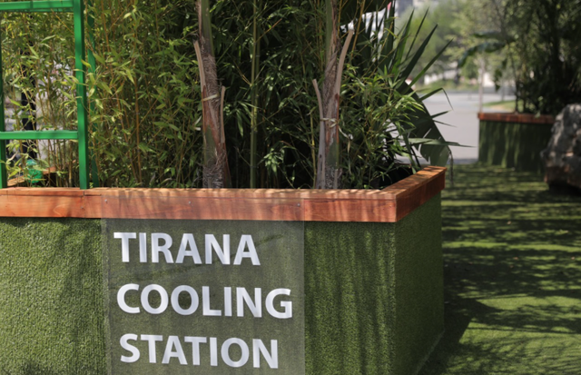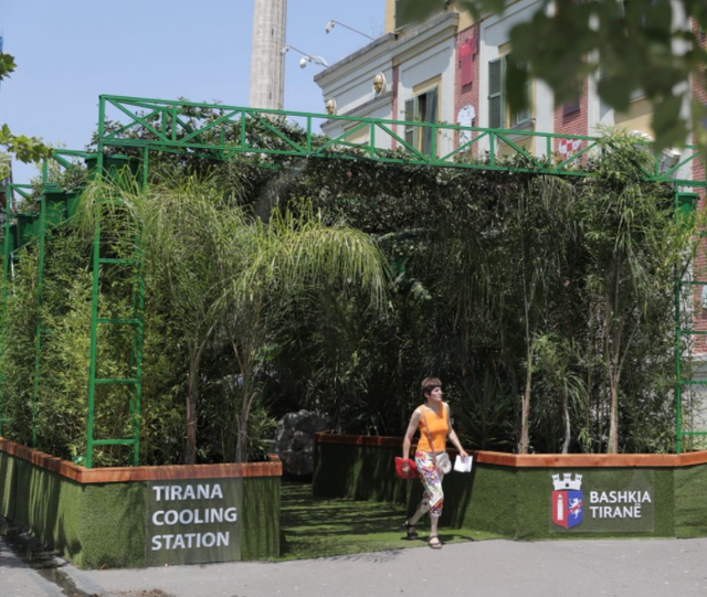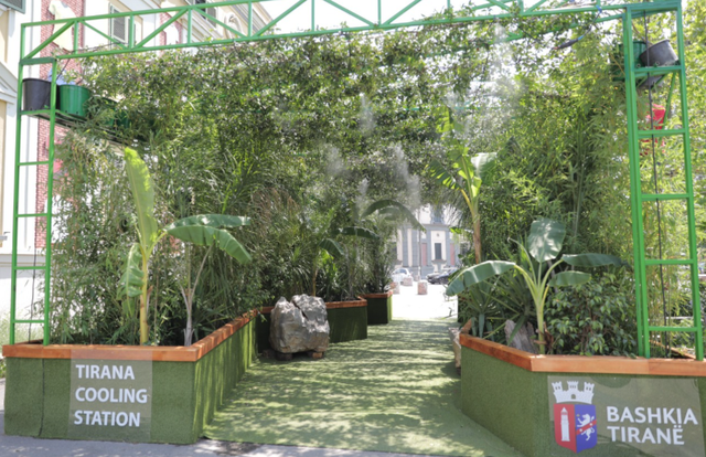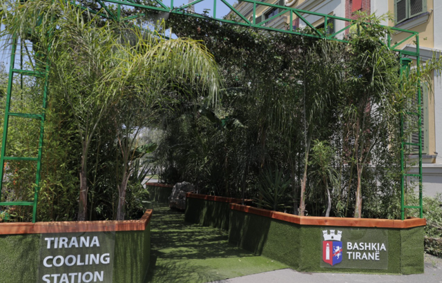 Nëse keni kaluar në qendër të Tiranës, përbri godinës së Bashkisë, dhe keni parë një instalacion disi ekzotik, mos ngurroni të futeni brenda, sidomos në këto temperature mjaft të larta. Ai është stacioni i parë i freskimit, një lloj oazi tropikal, ku të gjithë kanë mundësi të ndalen dhe të freskohen në këto ditë të nxehta vere.