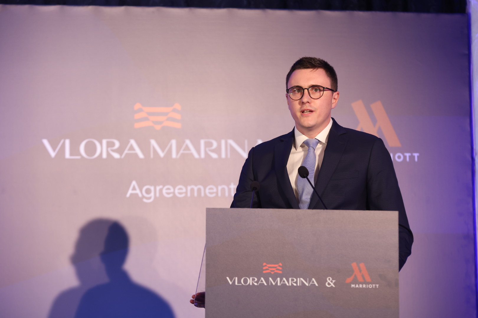 “Sot, qëndrojmë këtu me partnerët tanë nga Marriott të bashkuar në vizionin dhe përkushtimin tonë për ta bërë Vlora Marriott Hotel një shembull të shkëlqyer ekselence në hospitality. Ne besojmë shumë se Vlora do të kthehet në një nga qytetet më të rëndësishme mesdhetare dhe flamuri i ekonomisë blu shqiptare. Së bashku me partnerët tanë vendas dhe ndërkombëtarë, po prezantojmë koncepte inovative në arkitekturë dhe objekte urbane që do të transformojnë zonën aktuale duke përmirësuar ofertën e Vlorës si destinacion turistik, duke nxitur ekonominë vendase dhe duke krijuar më shumë mundësi punësimi.”