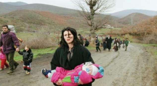 -Të përzunë cetnikët,ushtarët e një shteti agresor. Të përzunë me dhunë me armë kallashë, bomba, krisma, zjarre, sharje, ulërima. Le trojet, shtëpinë, avllinë, djepin që të përkundi, kopshtajat gjithçka ngase ora e hasmit ishte në lëvizje. Ndërkaq ky mot i zi mbrinte. Ikën fshatra të tërë me vargan, ngarkuar mjeteve të punës. Pas era e flakë, pishës dhe xixës së hasmit. Ndonëse i tillë, nga thellësia e kraharorit nxore mallkimin.Nga iridet e syve: solli lotin. Nga buzët dëshpërimi. Nga zemra: rruzuj mallkimi.